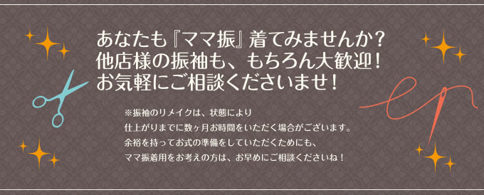 ご相談の際は、振袖や袋帯・長襦袢や帯締め・帯揚げなどの小物、腰紐や足袋などの着付け小物類などお手持ちの物をすべてご用意のうえご来店くださいませ。