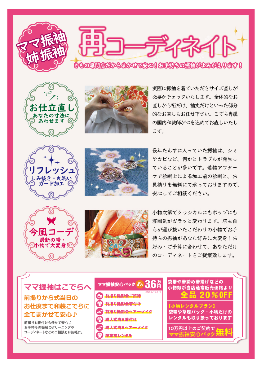 世代を越えて受け継がれる大切なお振袖は安心と信頼の専門店におまかせ下さい。