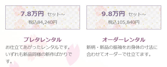 まき乃の振袖は、ご購入・レンタル共に必要なものがセットになった、お求めやすい【30点フルセット価格】となっております。ご気軽にお申し付けください。